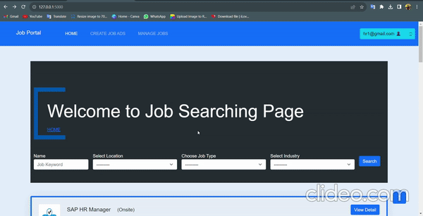 Job Portal: Merging Python prowess with HTML, CSS, and Bootstrap for a dynamic recruitment platform. Tailored profiles for recruiters, job seekers, and admins ensure a seamless experience. Responsive design enhances usability, providing an intuitive interface for streamlined talent acquisition. Elevate your hiring process with our comprehensive and user-friendly job portal solution.